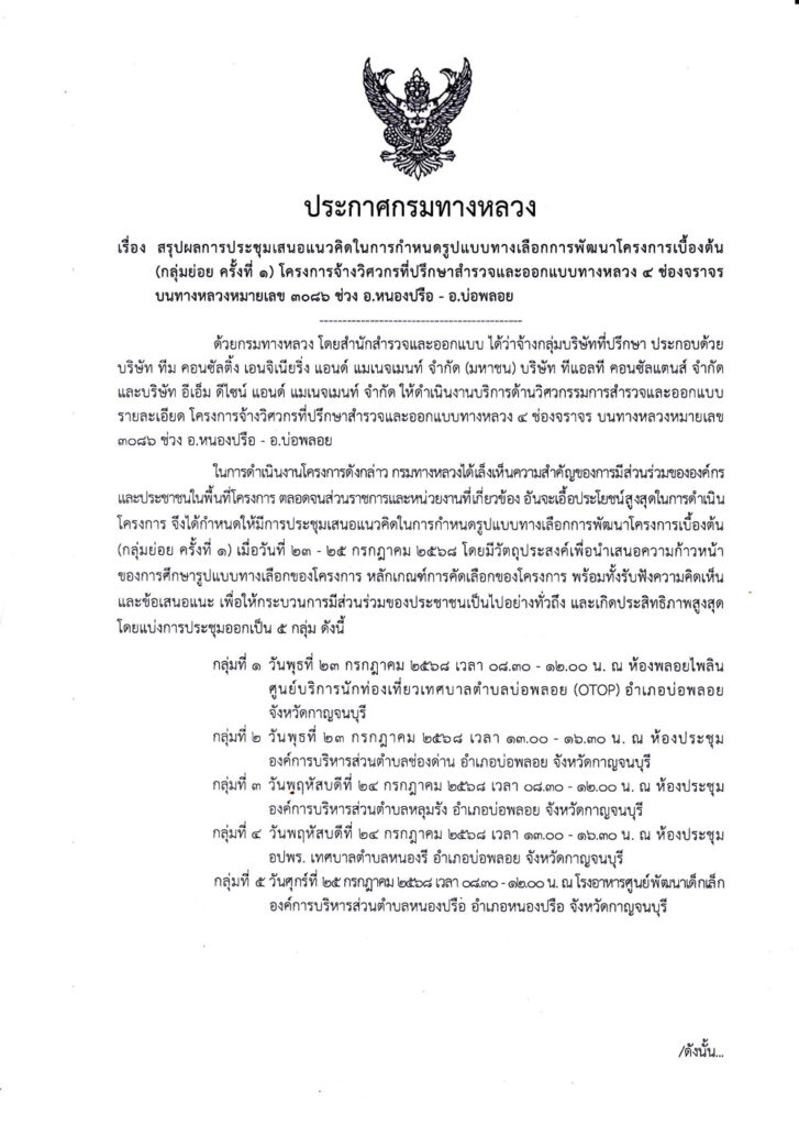 ประกาศสรุปผล บ่อพลอย กลุ่มย่อย 1